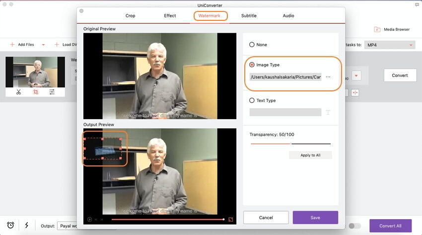 لحماية مقاطع الفيديو من السرقة ،فإنه من الأفضل إستخدام علامات مائية ، المقالة التالية توضح بالتفصيل كيفية إضافة علامات مائية إلى الفيديو بنظام الـ Mac وذلك بإستخدام UniConverter. تحقق هنا لمعرفة المزيد.