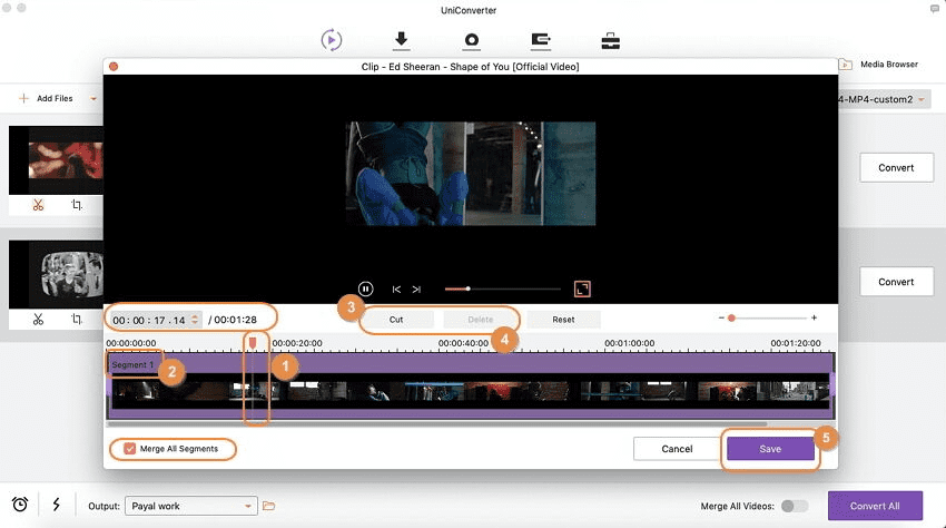 UniConverter على نظام Mac يمكن أن تساعد أيضا تحرير ملف DVD قبل التحويل. ضمن نافذة ما قبل العرض من كل فيديو، سترى ثلاثة رموز صغيرة تشير إلى تقليم والمحاصيل والآثار بشكل منفصل. انقر على الرمز وستظهر نافذة منبثقة. ثم سترى العديد من علامات التبويب، مشيرا إلى تحرير مختلفة مثل تقليم الفيديو، إضافة تأثيرات / العلامات المائية / ترجمات لملف دفد الخاص بك، أو ضبط حجم، الخ.