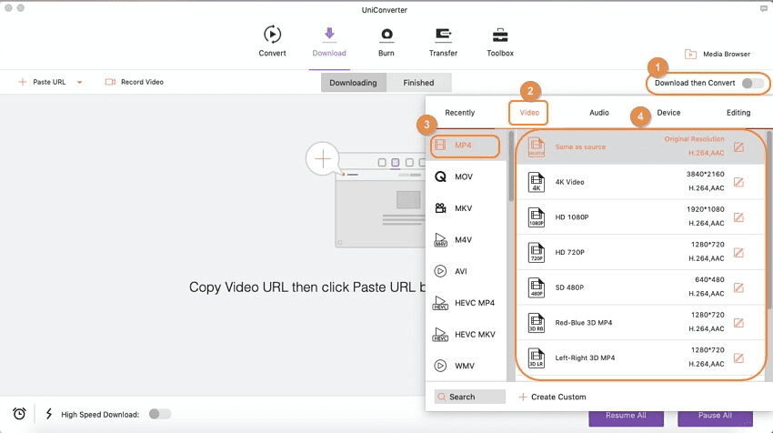 بالمناسبة، هناك "تحميل ثم تحويل وضع" زر على الواجهة الرئيسية من "تحميل" علامة التبويب. اختره، وسوف تكون قادرة على تعيين تنسيق الإخراج للفيديو .