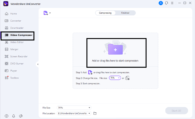Guess what? Uniconverter 13 is the only tool that can bring about convenience in your life and make it wonderful by solving all of your storage problems. Realizing all traits and functionalities, we consider Uniconverter as a one-stop shop where you’ll get antidotes to all of your troubles. With that done and dusted, let us inform you of the steps to apply so you can reduce video sizes.
