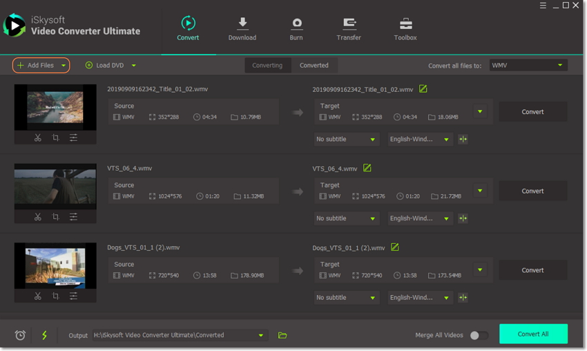 After successfully downloading and installing, launch the software on your PC. Files on the system can be added by clicking on the + Add Files button. Add multiple files or an entire forlder for batch processing. The drop-down menu here further enables to load WMV files directly from connected devices.