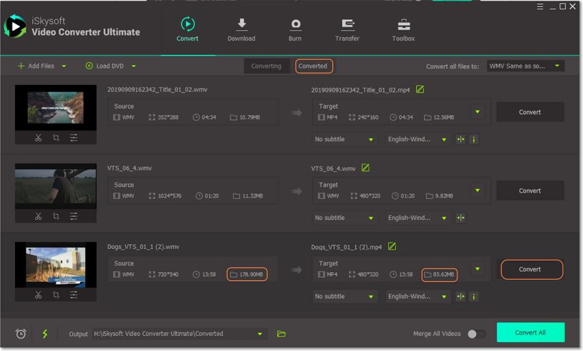 At the Output tab, select the location on your system where you want to get the files saved after the process. Hitting on the Convert All button will start the file compression process.