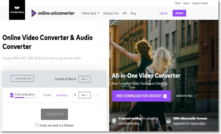 This online video conversion tool facilitates compressing your video files in WMV and other popular formats by changing an array of parameters including video size, bitrate, frame rate, and video aspect. Files can be converted to an array of supported formats as well. You can add WMV and other files from the computer, link, Google Drive or Dropbox to the program interface for the compression process. The files compressed videos can be saved to your PC using the QR code or can also be saved directly to cloud storage.