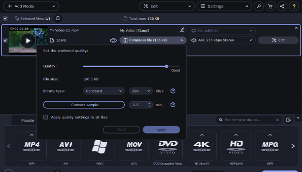 Movavi is a versatile video editor and can be used to compress video files on Mac. It can merge videos and convert video files to many formats. It is compatible with both iOS and windows.
