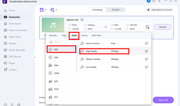 Uniconvertor is a promising OPUS to MP3 converter that you can rely on with your closed eyes. The software is primarily advanced to offer you the best and secured converting services. The conversion of OPUS to MP3 is quick and rapid.