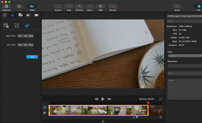 Capto is an intuitive software that offers full advanced features from its screen recording and capturing features, to its audio/video editing features, MP3 cutter role, and more. Capto allows you to trim MP3 files in desirable length, edit your MP3 with its available editing tools, and save your MP3 files.