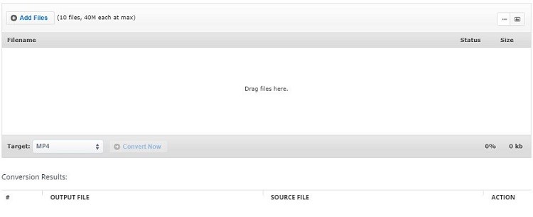 AConvert is a decent and user-friendly online conversion tool that allows adding popular video formats from the local system, URL, and cloud storage for the process. Several formats as the target file options are available and you can even change the file parameters like size, bit rate, frame rate, video aspect if required. The processed files can be downloaded locally.