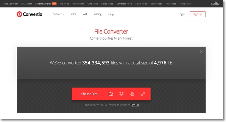 With Convertio, files on the system, URL, Google Drive, and Dropbox account can be added to the program. Multiple files within the maximum allowed size of 100MB can be added for the conversion. Under the settings option, you can resize, cut, and rotate the file. File parameters like frame rate, codec, profile, and others can also be changed. The converted files can be saved to your system or to the cloud storage as well.