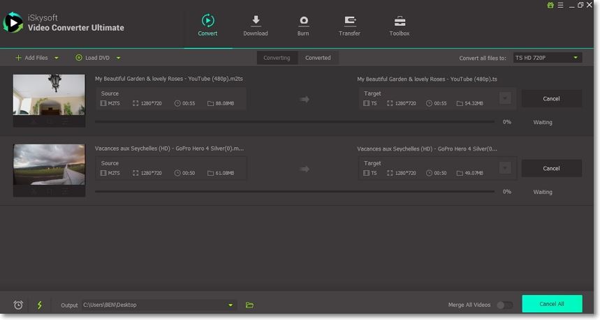 Set the output destination and then tap the Convert All button. The program will start converting your M2TS videos to AVI with zero quality loss. You can find your saved files in the Converted tab. It’s that simple!