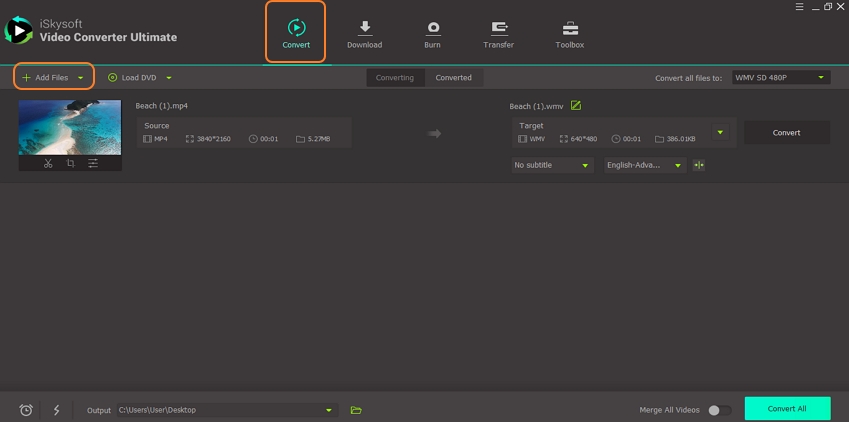 Locate the Output section below the home window and set a saving folder. Lastly, click Convert All for multiple conversion or Convert for a single file to begin the process. You’ll find the transformed WLMP clips under the Converted button.