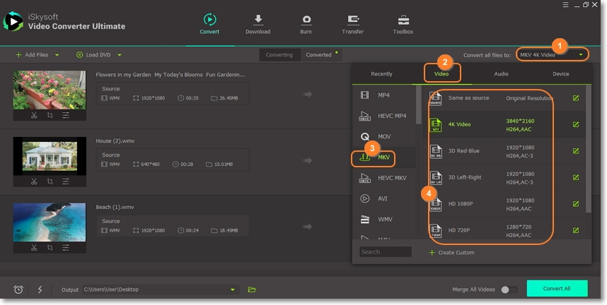 Step 2: After adding the WMV files, go to “Convert all files to” and choose “Video” > “MKV”.