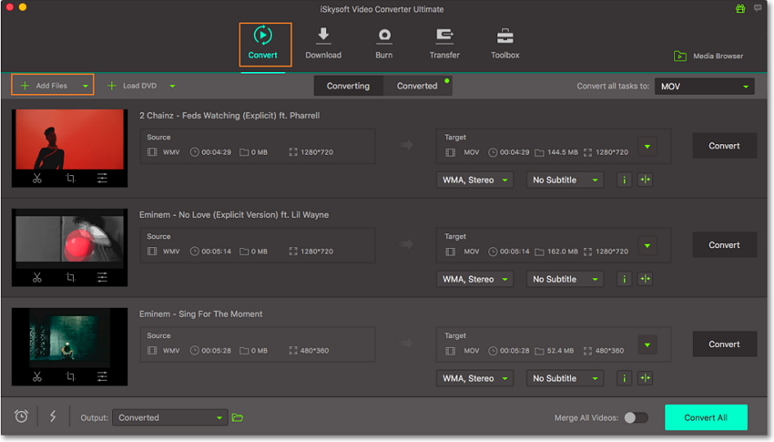 - Friendly user interface: Its interface is neat such that the users can jump directly into the tasks that they would want to perform, like to convert and import WMV to iMovie.