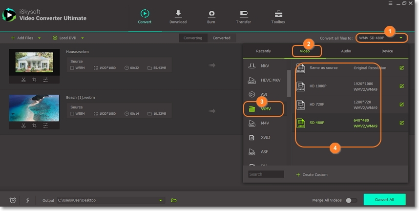 Convert WebM to WMV with iSkysoft Webm to WMV converter