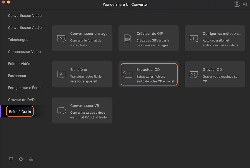 Après avoir lancé le logiciel, cliquez "Extracteur de CD" dans l'onglet Boîte à Outils.