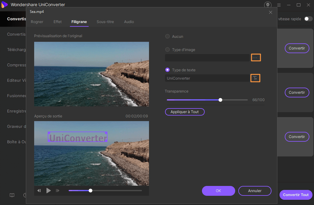 Ajoutez des filigranes à vos projets vidéo pour les protéger contre le vol. UniConverter rend cette tâche facile en vous permettant d'ajouter des filigranes à un projet vidéo existante ou nouveau. Voici les instructions d'étape par étape.