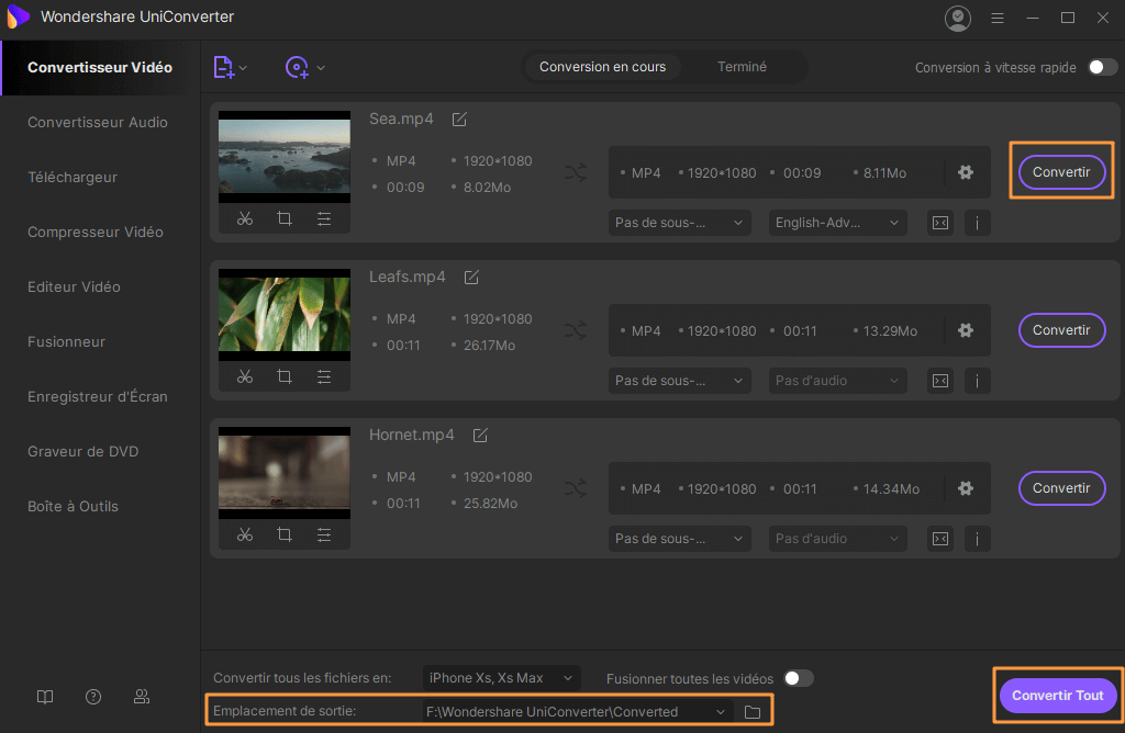 3.Sélectionnez votre dossier de sortie et convertissez votre fichier