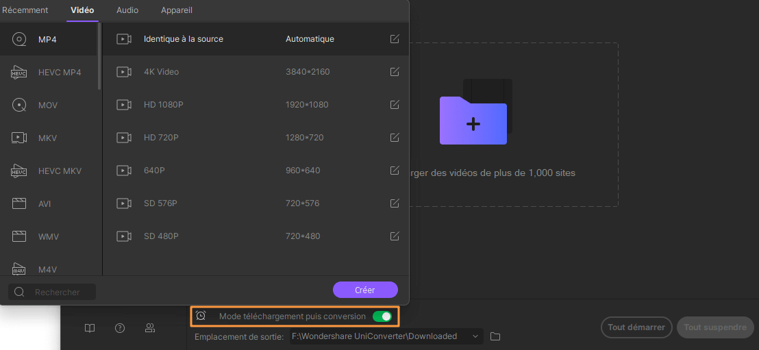 Remarque: Si vous voulez télécharger et convertir la vidéo en ligne à la fois, activez la "Mode téléchargement puis conversion" pour sélectionner le format de sortie avant de copier l'URL.