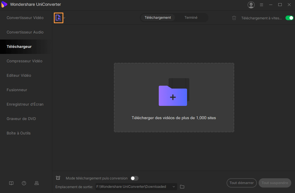 Lancer le programme sur votre ordinateur, puis passez à l'onglet "Téléchargeur".