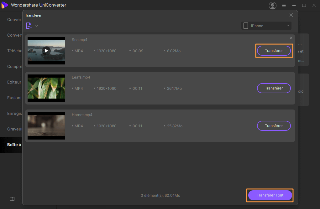 Transférez des fichiers vidéo ou audio vers des appareils mobiles