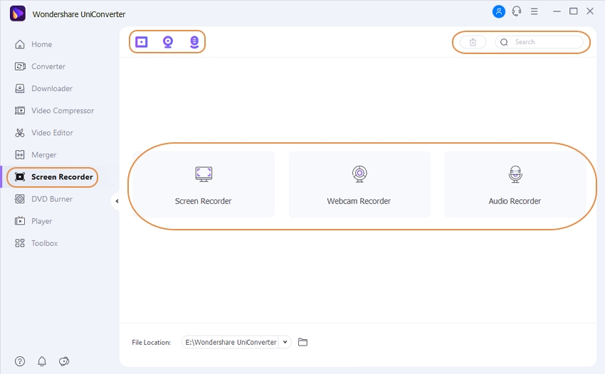 UniConverter has built-in functionality that can record screen, webcam, or audio. he recordings will automatically stored in the software and you can directly convert them to the many popular formats.