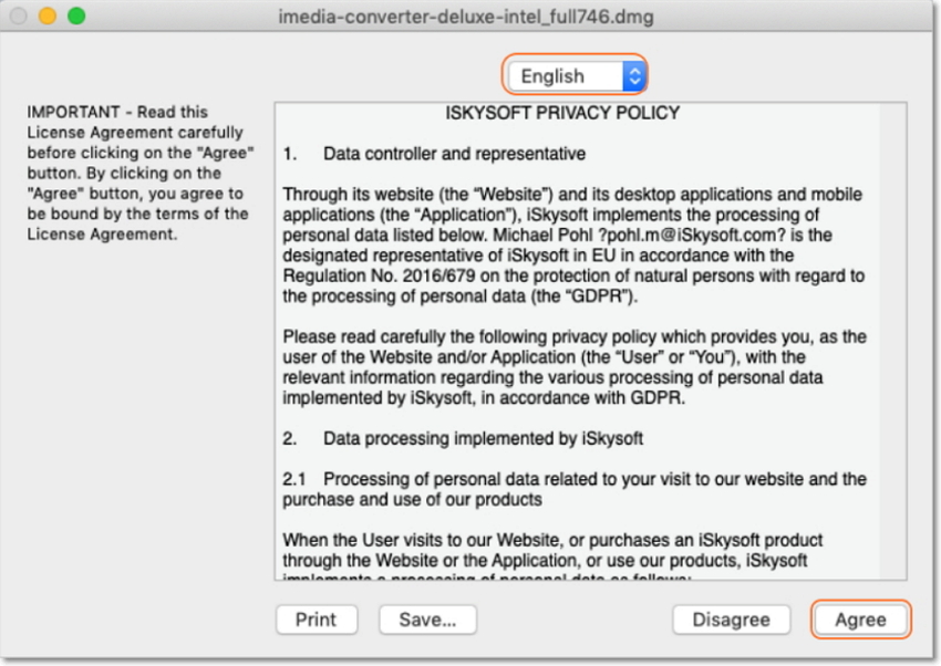 From the pop-up window, select your preferred language and click OK. Then click the Next bouton, choose "I accept the agreement", selct the location of instalation, and then click Install to start installing.