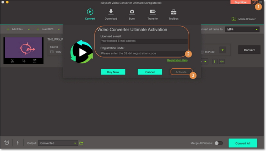 Once you get the Wondershare ID and Password of using UniConverter or if you have already purchased it, you can activate the program for full use by selecting the icon with the following detailed steps.