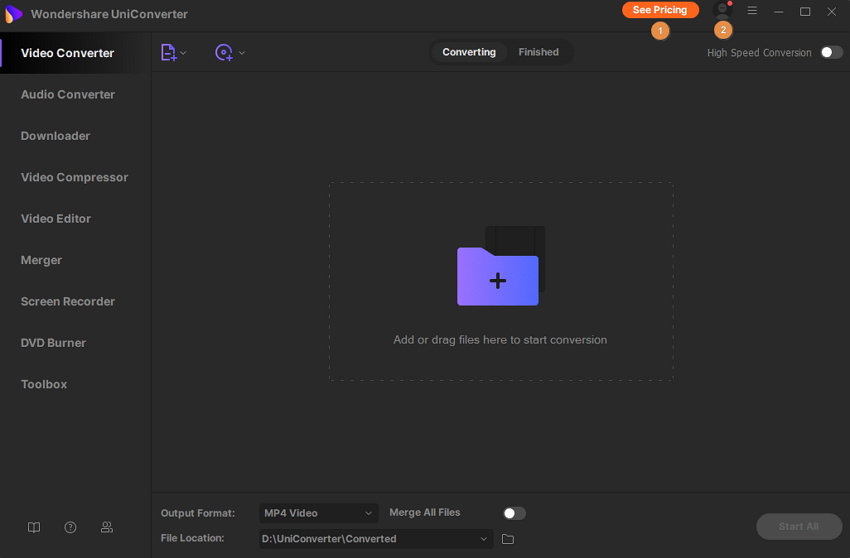 If you want to enjoy the full features without any limitation, please simply click the See Pricing option at the upper-right corner to purchase Wondershare UniConverter 13 from the official website.