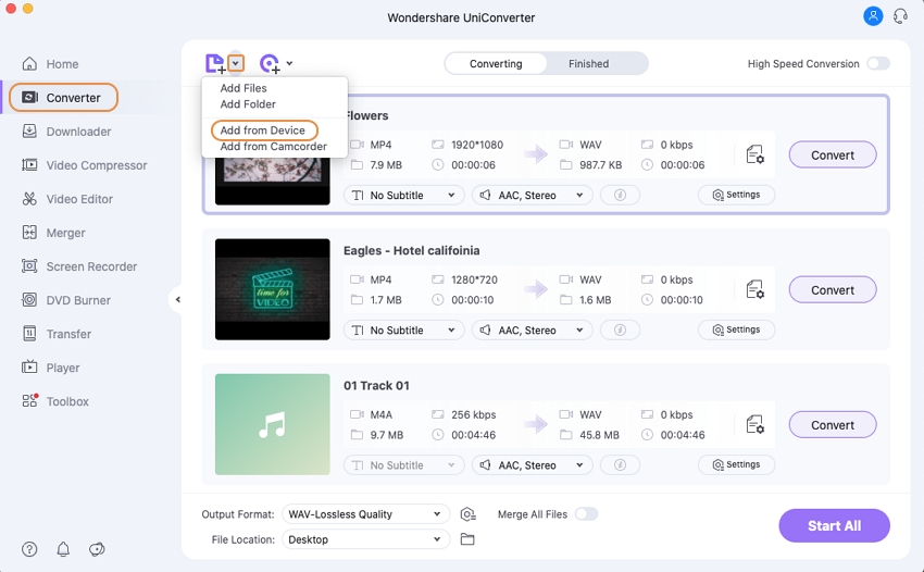 Uniconverter for Mac allows you to convert and edit video files directly from your camcorders.