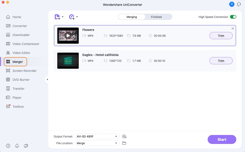 The Merger function is an excellent solution when the flawless merging of numerous files is required. For the procedure, you can include videos from the system, device, and camcorders, as well as DVD folders, ISO, and IFO files. Popular formats such as MKV, AVI, MP4, and others are supported for high-speed merging. You can select the output format and, if necessary, reduce the additional videos before merging.