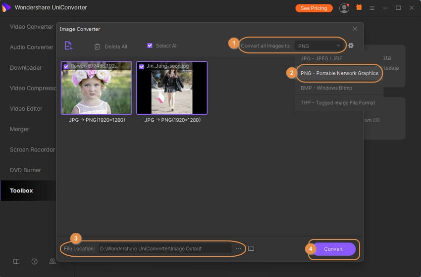 Steps to convert images using Wondershare UniConverter: