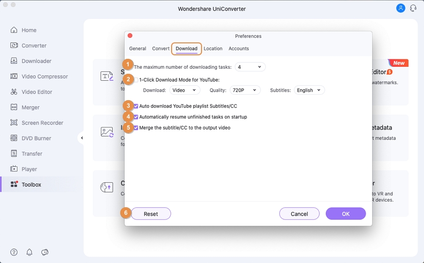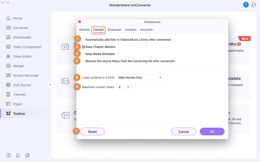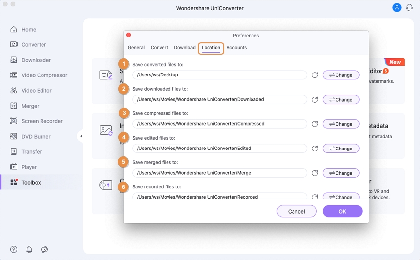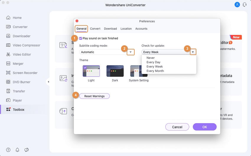 The following are the preferences of Uniconverter: