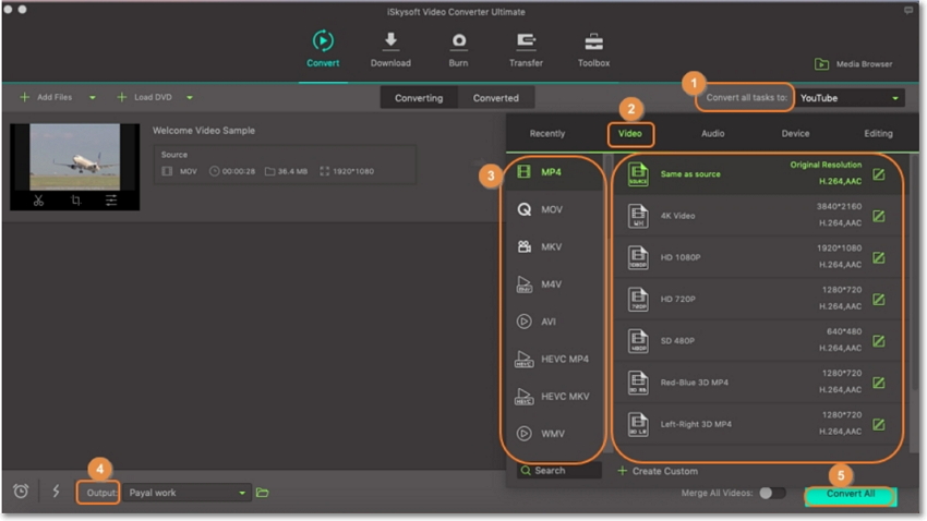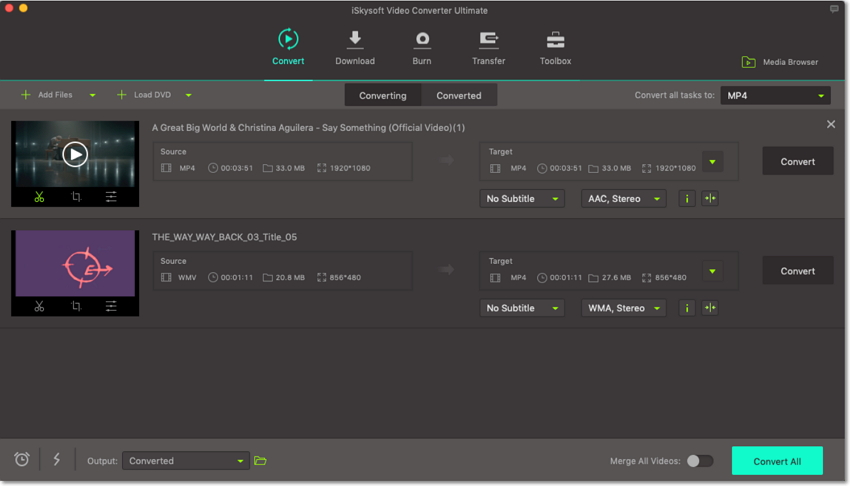 To proceed, select the format for the modified movie from the drop-down menu beside Output Format: and then click Start All.