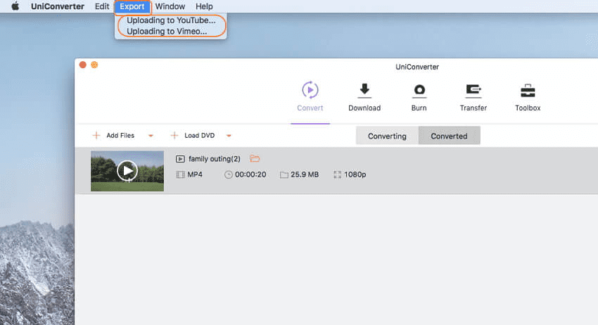 Negli ultimi anni, è abbastanza comune condividere i video con gli altri, caricandoli su un sito Web. Purtroppo, moltissime persone hanno una problema simile nel caricare un video. Ora, con questo strumento di conversione video per Mac, sarai in grado di caricare qualsiasi video su YouTube, Facebook, Vimeo e siti più popolari senza alcuna restrizione.